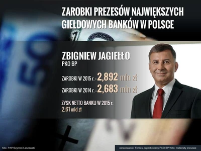 W 2019 roku, jeśli chodzi o podstawę wynagrodzenia, jagiełło otrzymał tyle samo zbigniew jagiełło. Materiały prasowe pko bp / forsal.pl.